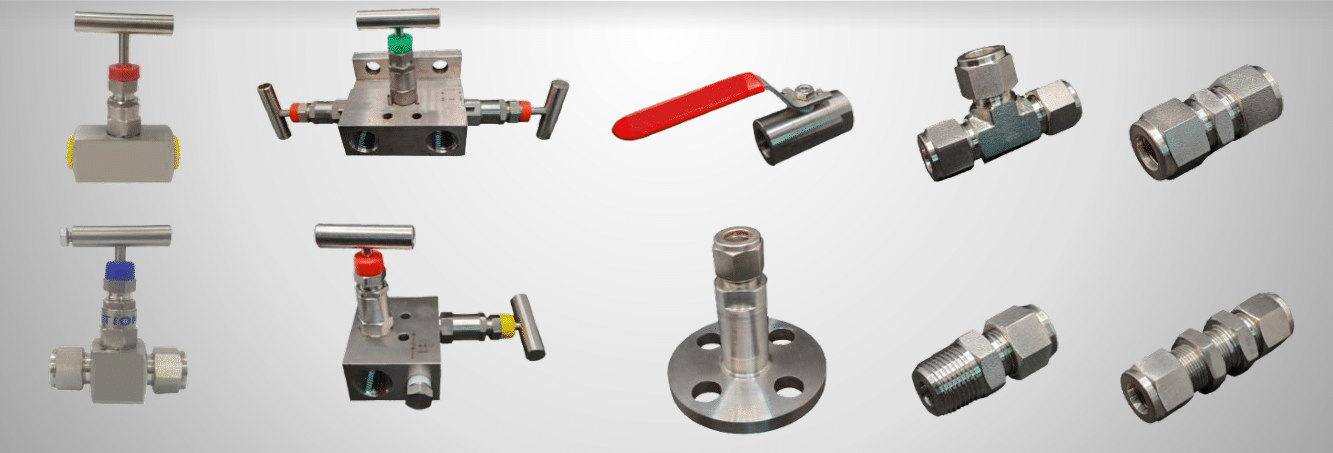 e válvulas agulha, esfera e manifolds.
